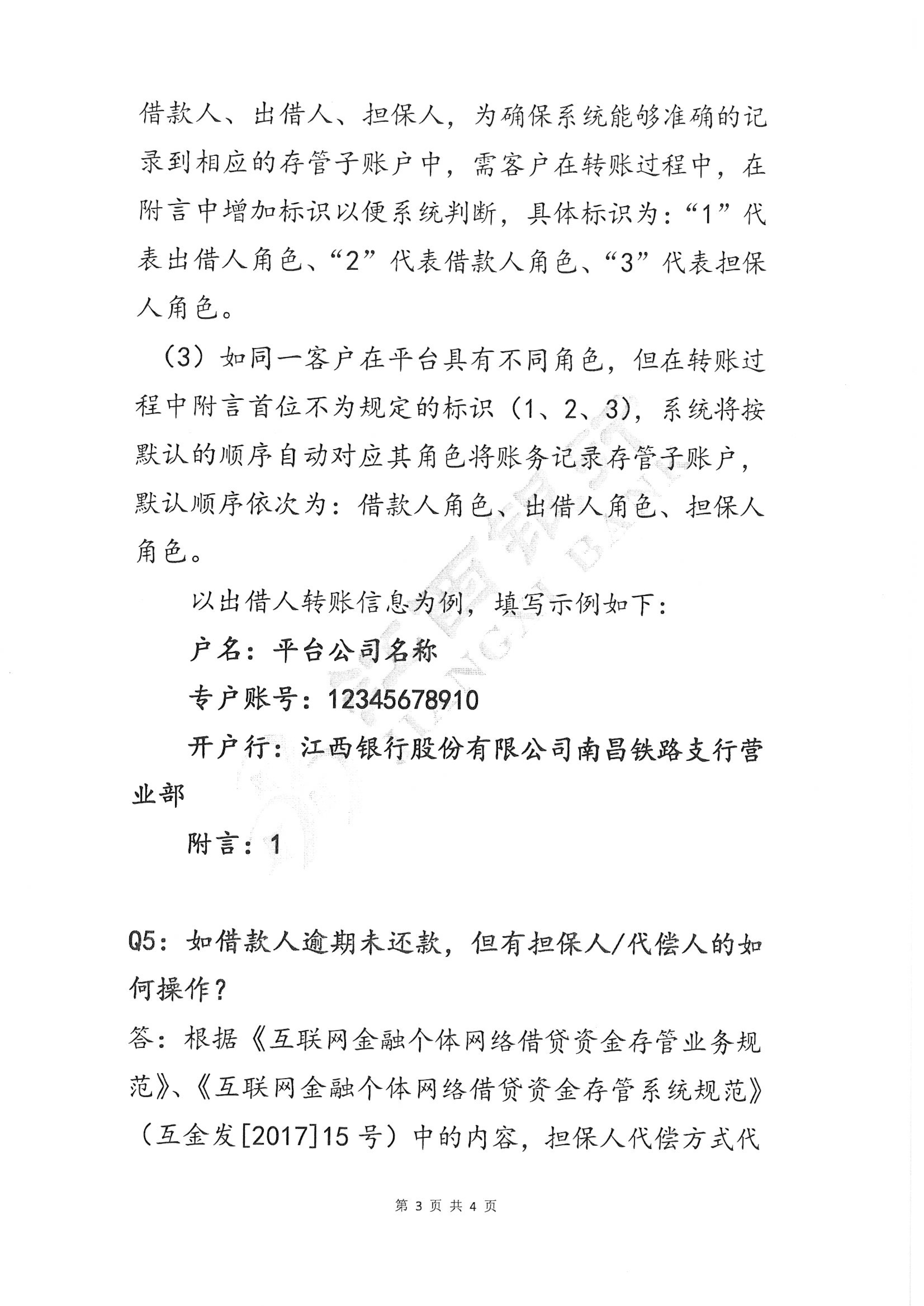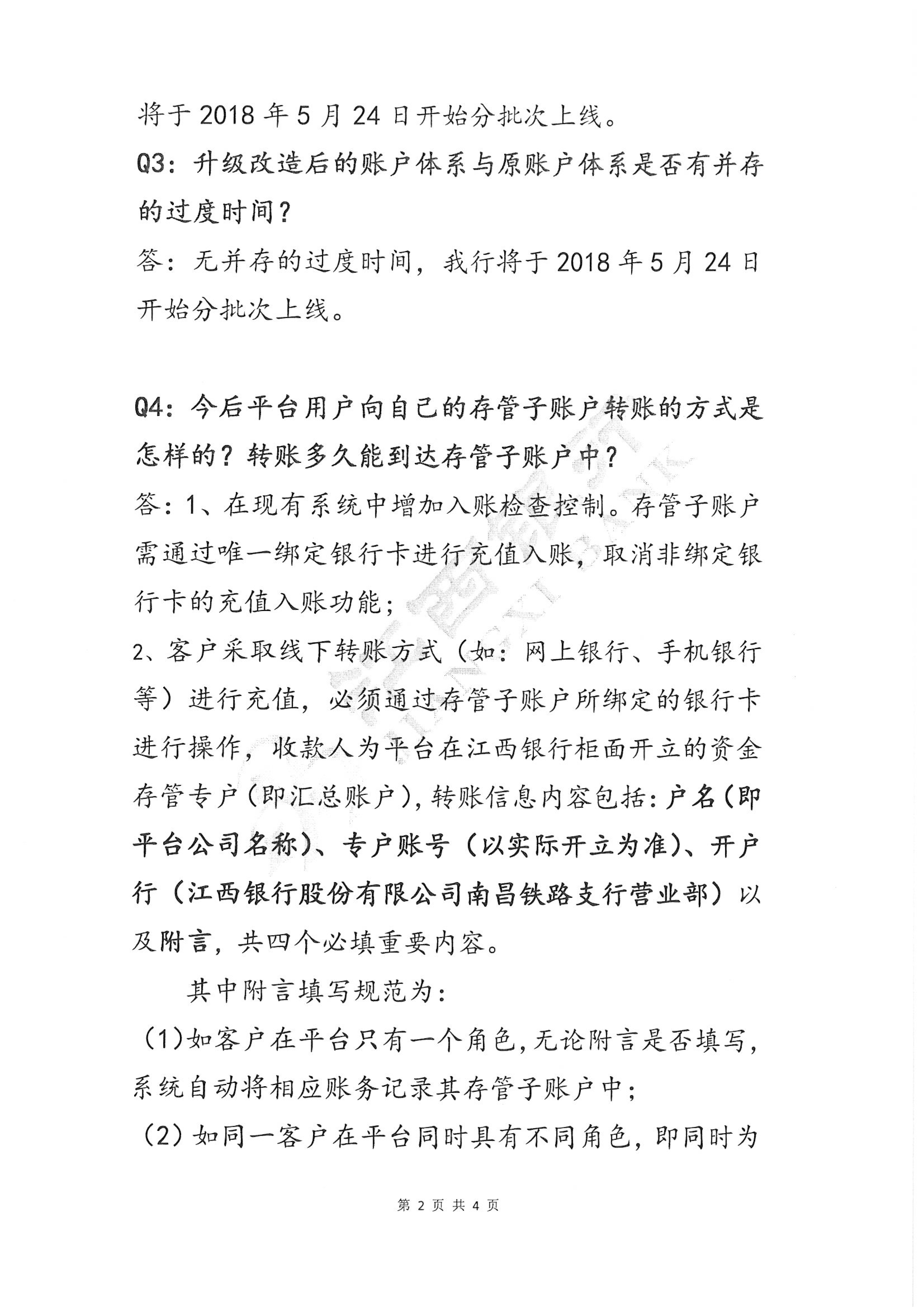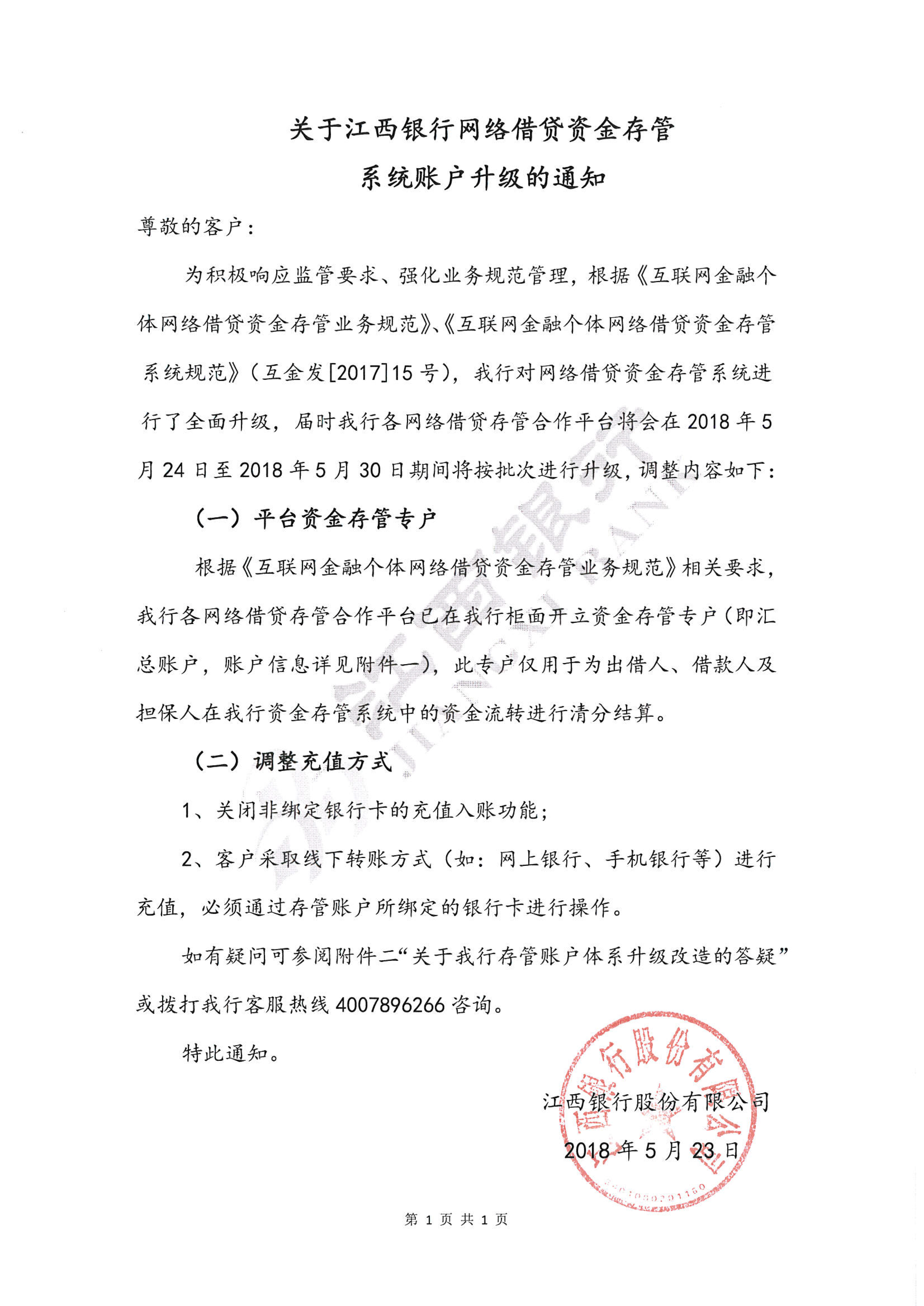 關于江西銀行網絡借貸資金存管系統賬戶升級的通知