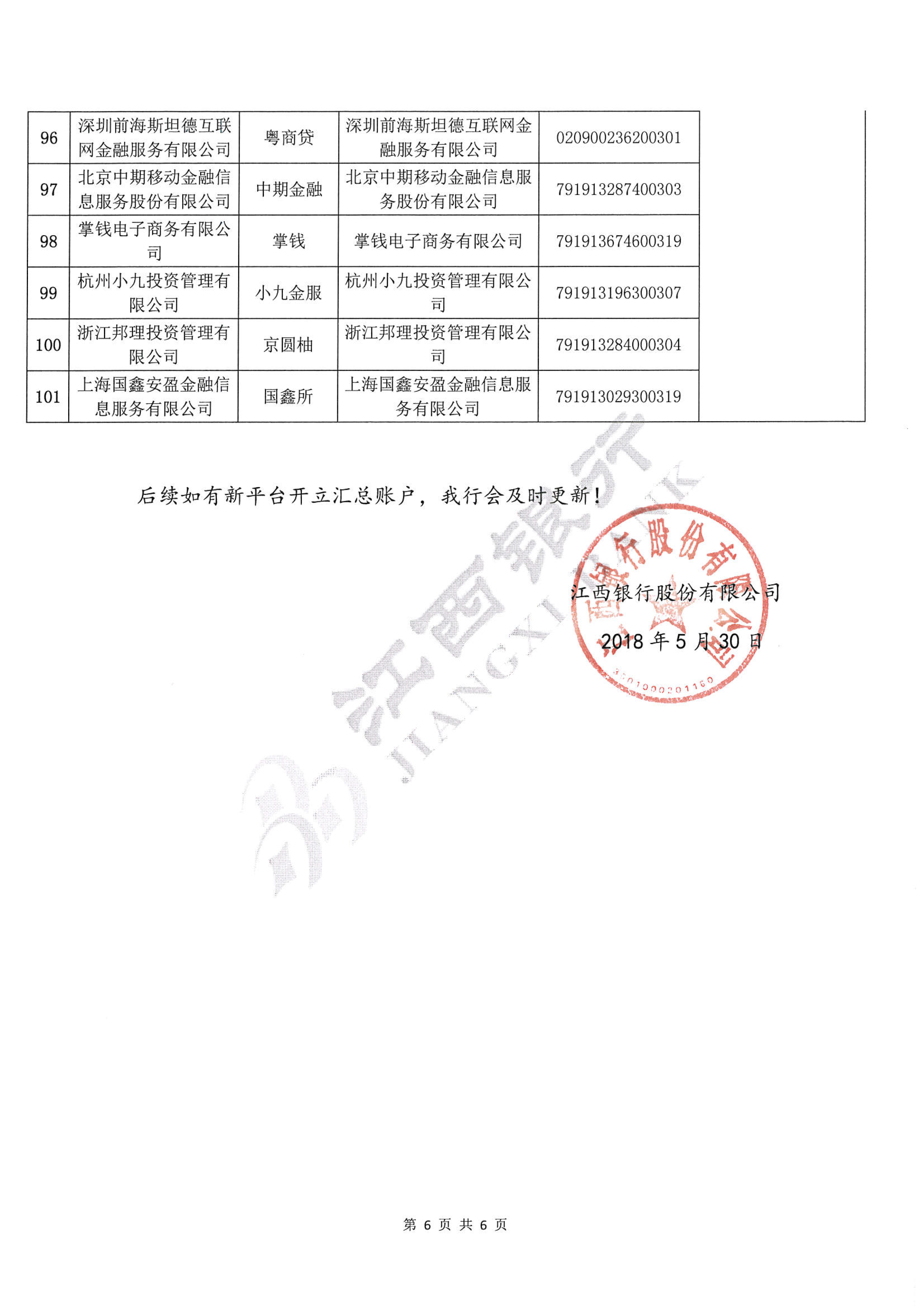 江西銀行P2P平臺資金存管業務公示(2018年4月)