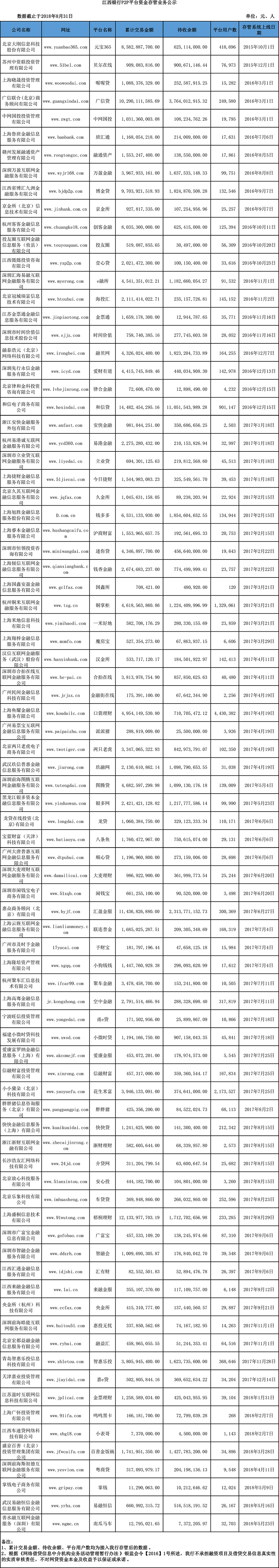 江西銀行P2P平臺資金存管業務公示(2018年8月)