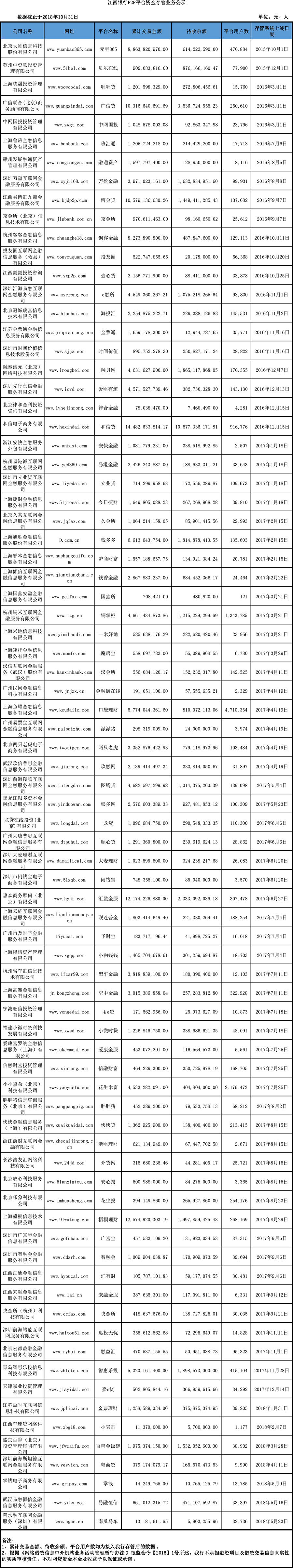 江西銀行P2P平臺資金存管業務公示(2018年10月)